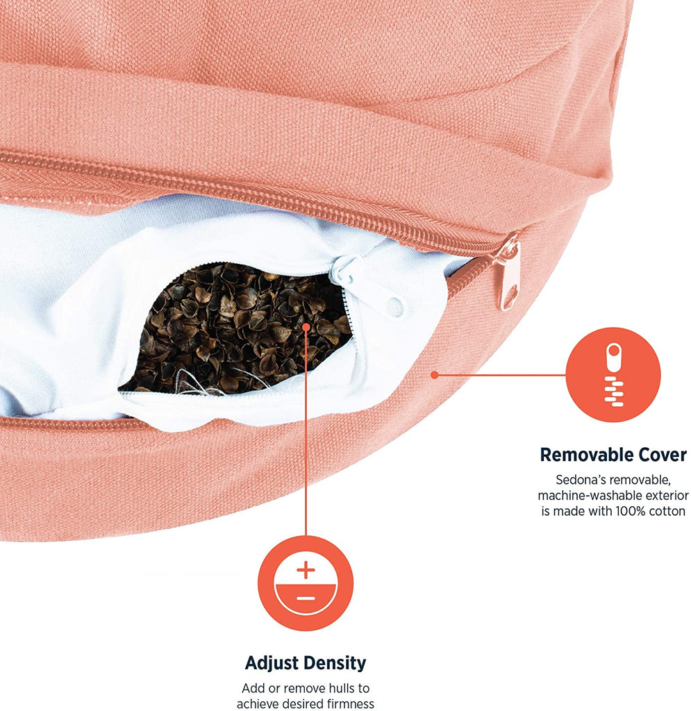 • Sedona’s core composes of 100% sustainably sourced buckwheat. To change the density, simply unzip the interior cotton cover and add or remove hulls to achieve desired firmness.